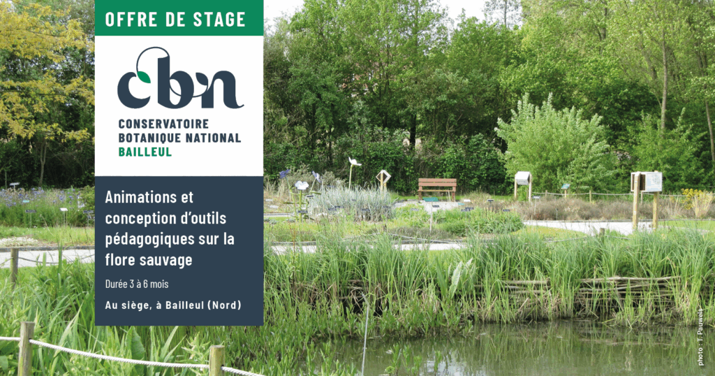 Le siège du CBN de Bailleul propose un stage de 3 à 6 mois “Animations et conception d’outils pédagogiques sur la flore sauvage”. Démarrage en avril 2026 selon les disponibilités de l’étudiant. Réponse souhaitée avant le 9 janvier 2026 Plus d’informations pour postuler ici